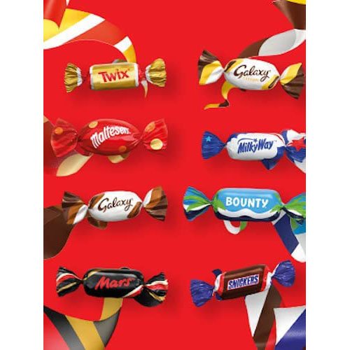 From nuts and nougat to coconut and caramel. Eight of your favourite centres. each one wrapped in delicious milk chocolate. There’s something for everyone with Maltesers Teasers. Galaxy Caramel. Mars. Milky Way. Snickers. Twix. Bounty. and Galaxy Milk Chocolate.