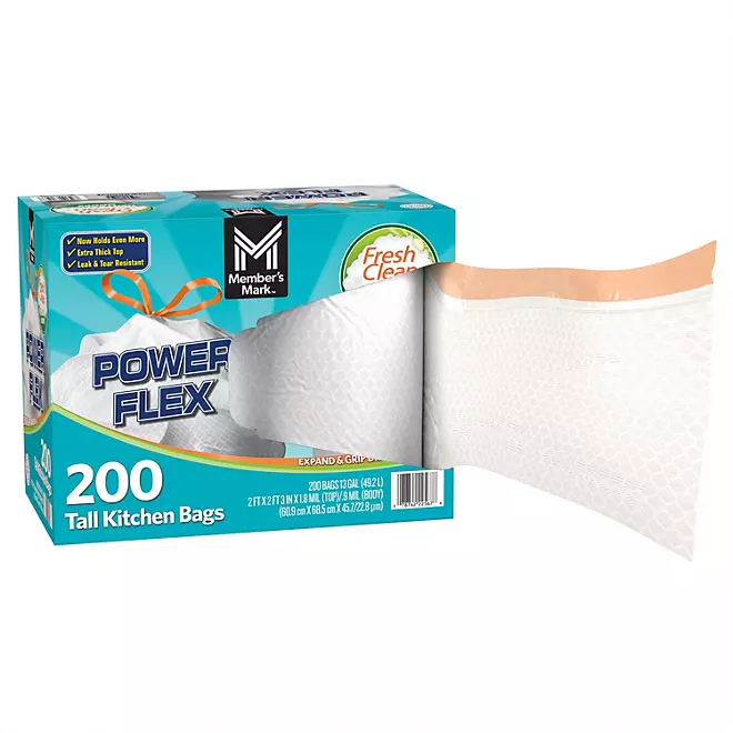 Member’s Mark Power Flex 13-Gallon Tall Kitchen Trash Bags. Fresh Scent